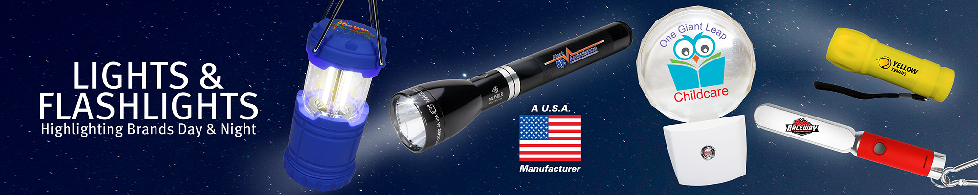 Laser Engraved Imprint. Press button once to turn on flashlight, press button again to light up imprint. Sleek UV plated sides. Metallic colors with c